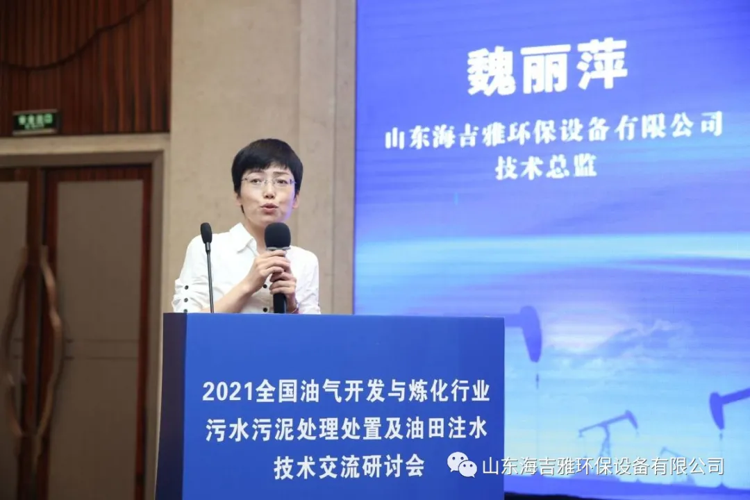 我公司作為集油田水處理設(shè)備的設(shè)計(jì)、制造、銷(xiāo)售、安裝、維修改造與技術(shù)服務(wù)為一體的專(zhuān)職油田水處理服務(wù)企業(yè)、高新技術(shù)企業(yè)單位,受邀出席了本次研討會(huì),公司技術(shù)總監(jiān)魏麗萍在本次研討會(huì)中做出了專(zhuān)題報(bào)告。